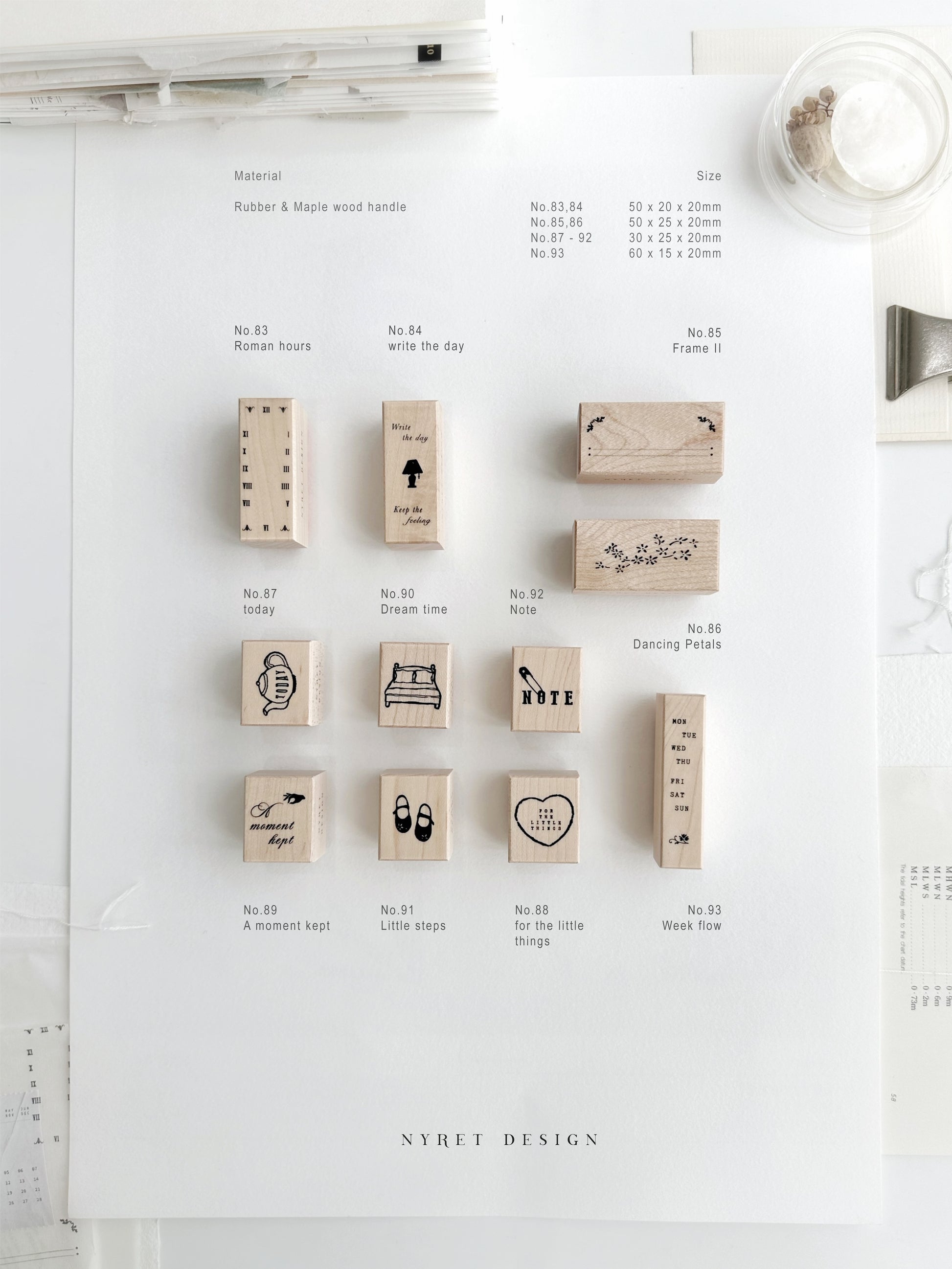 A thoughtfully designed rubber stamp collection that celebrates the beauty hidden in everyday moments. From the quiet comfort of a bed and the gentle rhythm of daily steps, to blossoms drifting in time and the soft glow of evening light, each stamp is a tribute to life’s simple joys. These designs remind us that the little things aren’t little at all; they are what make each day memorable.